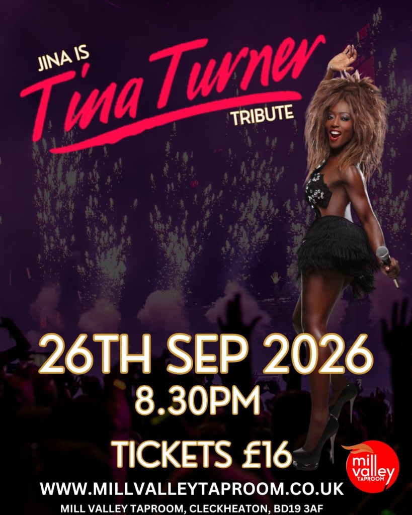 Get ready for a night of unstoppable energy, powerhouse vocals, and iconic hits as Jina as Tina Turner brings an electrifying tribute performance to Mill Valley Taproom on Saturday 26th September 2026 at 8:30pm.